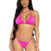 Be a stunner this summer in the 2 PC Domino Bikini Set by Leg Avenue, featuring the ultra-sexy diamond pattern rhinestone string bikini top, adjustable tie back straps, and cheeky ruched bikini bottoms. This cute bikini set is ready for lounging poolside or weekend beach bikini fun, and the triangle bikini top doubles as a cute summer fashion accessory.
