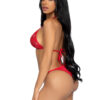Make a statement poolside in the 2 PC Phoenix Bikini Set by Leg Avenue, featuring the ultra-sexy rhinestone string bikini top, adjustable tie back straps, and cheeky ruched bikini bottoms. This cute bikini set is ready for lounging poolside or weekend beach bikini fun, and the triangle bikini top doubles as a cute summer fashion accessory.