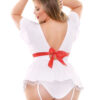 It’s not a fever. It’s just your tempature rising in anticipation of your vist from the Bedside Nurse! She’s got a tie-back short sleeve dress with faux-stocking garters, matching hi-cut panty and medic hat to cure what ails you.