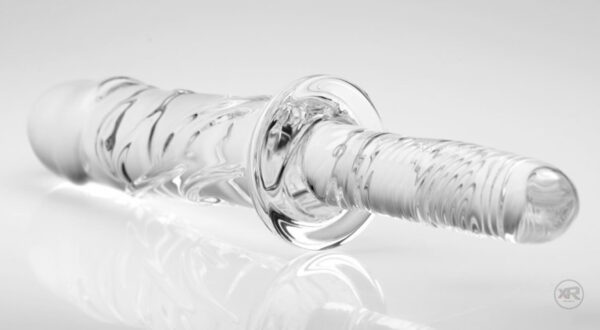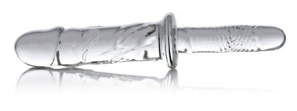Shove this textured glass dildo into your eager hole, or play with a partner! Designed with a grooved handle, this rod allows you to take a secure grip and easily thrust at your desired length and pace. The realistic shape is complimented by protruding ridges that will offer a unique internal massage. Made of shatter-resistant glass, this shaft is rock-solid and heavy to create a greater sense of fullness. Experiment with temperature play by submerging it in hot or cold water prior to use. This hypoallergenic material is non-porous, allowing for thorough sterilization with mild soap and warm water. Compatible with all lubricant types.