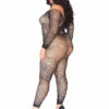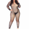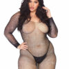 Treat yourself and your babe to this plus size sexy lingerie Bodystocking by Leg Avenue, featuring curve-hugging Fishnet, scoop neckline, Long Sleeves, hand laid rhinestones, and open crotch. Sexy and versatile, the net design of this crotchless lingerie bodysuit flatters every body type and makes a statement in the bedroom or as a night out layering piece. (Panty not included)