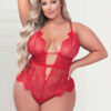 Eyelash Lace Teddy With Satin Ribbon Bow – Queen Size – Red