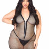 Be ready for anything in this ultra hot lingerie Dress by Leg Avenue, featuring curve-hugging bodycon Fishnet, Zipper front, Halter neck, and sultry bare back. Get biker babe vibes with the zipper front that lets you control the cleavage action. Sexy and versatile, the net design of this plus size sexy lingerie bodycon dress flatters every body type and makes a statement in the bedroom or as a sexy swimsuit coverup. (Panty not included)