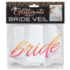 Designed for the bride with impeccable taste, style and class the Glitterati Bride Veil is made with high quality double layered 22 inch fine tulle with rose gold stamped Bride. Get the coordinating Glitterati Bride Sash to complete your look. Elevate your next Bachelorette or Anniversary party to VIP status, our on-trend Glitterati line of party goods that are playful yet refine and sophisticated.