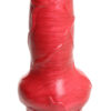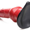 Pounce into playtime with this Hell-Hound Canine penis! The large, red dildo has bulbous testicle glands in a knot above the base, thick veins along the shaft, a concave head with pointed tip and a sturdy black base. Enjoy hands-free by using the strong, suction-cup base against a wall or flat surface or pair it with a strap-on harness for pegging play! Use only with water based lubricant.