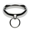 This versatile cock ring is a heavyweight way to enjoy erection enhancement while adding style and functionality! The o-ring at the front will set the mood as a statement piece, or act as a versatile anchor point for ropes, chains, clamps, or other bondage accessories. Get creative! Chain them to the wall or force them to bend over in supplication to you. The smooth, weighty steel is temperature sensitive and can be heated up or cooled down as you desire.