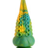 Fantasy Dildo: This tapered tentacle has a marbled green, yellow and blue pattern that is unique to each dildo. The tapered tip comes to a small, round end and widens to a large, round base. One side of the shaft has two rows of cephalopod suckers with meaty ridges in between and a row of ribbed, circular rings extending from the base to the tip of this S-shaped, curved tentacle arm dildo. Put a costume together or use your imagination and play out your favorite fantasy scene!