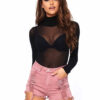 Opaque High Neck Long Sleeve Bodysuit With Snap Crotch – One Size – Black