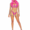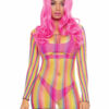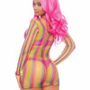 Everything is coming up rainbows in this fun and colorful lingerie dress by Leg Avenue, featuring rainbow fishnet with overlock stitching and long sleeves. Looks amazing paired with festival outfits or as a swimsuit cover up. (Layered items shown not included)