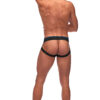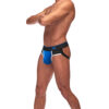 From the Retro Sport collection by Male Power, this style includes: a panel jock with color blocked fabric inserts accented with white trim and stripes, plush elastic waist band with MP logo, and wide leg bands for butt lifting support.